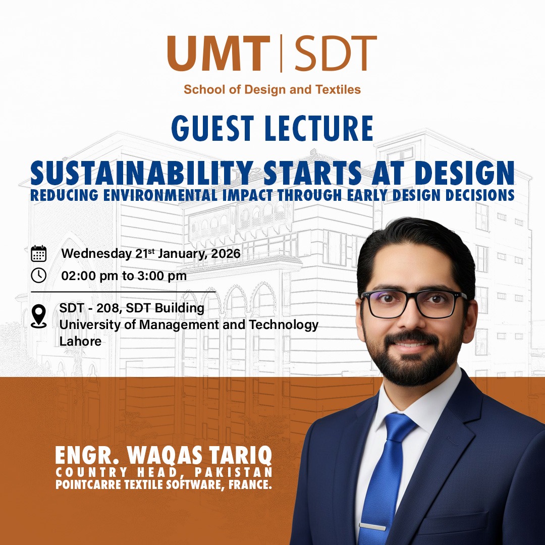The School of Design & Textiles (SDT), University of Management and Technology (UMT) proudly acknowledges the successful participation of its students as backstage ushers at HUM Bridal Couture Week 2025, held from 19–21 December in Lahore. This professional ...